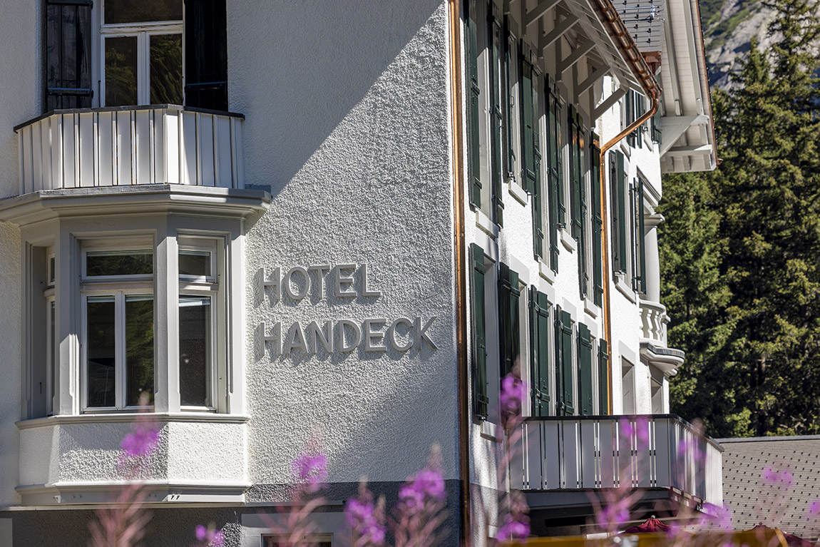 „Auf einer kleinen Lichtung, gegenüber der Gelmerbahn, der steilsten offenen Standsteilbahn Europas, liegt das Hotel und Naturresort Handeck umgeben von Feld, Wald und Wiese“, erzählt Annika Siegenthaler, Leiterin Bankett und Events. Das Hotel bietet 39 Zimmer mit einer Gesamtkapazität von 85 Personen und dazu einen Wellnessbereich mit beheiztem Außenpool. Eine idyllische Waldlichtung oberhalb des Hotels ist der perfekte Ort für die Zeremonie umgeben von Natur. Der Ärlensaal bietet Platz für bis zu 90 Gäste für das Hochzeitsessen.