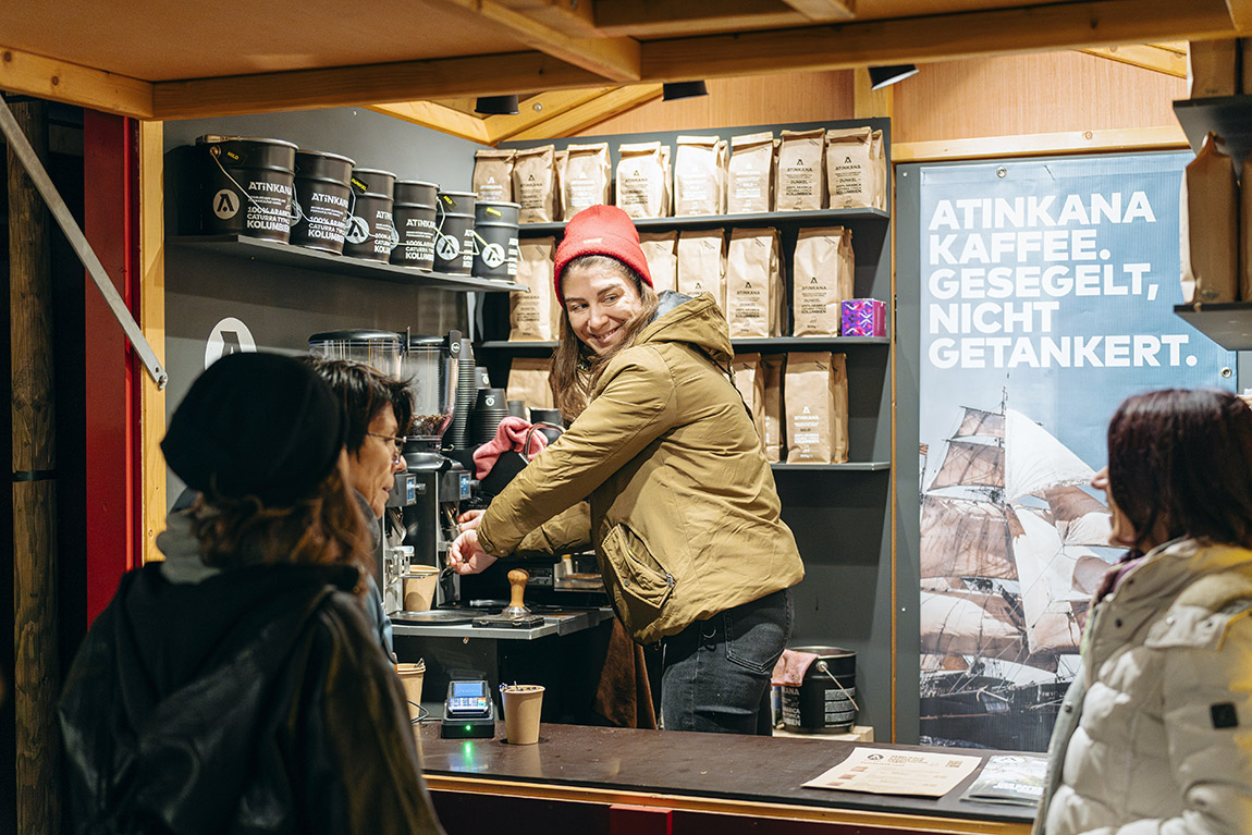 Lovingly designed decorations and charming details such as street signs and house numbers, lavishly decorated trees, small wooden animals in the narrow winding alleyways and the little elf village for young visitors are all part of the village’s magic. Stilt walkers, fire breathers, concerts and many other highlights are sure to brighten the eyes and fill the hearts of visitors with wonder. Throughout the village, cosy hideaways, fireplaces and alcoves decorated with furs and rugs offer plenty of space for cosy get-togethers and relaxed conversations with family and friends.