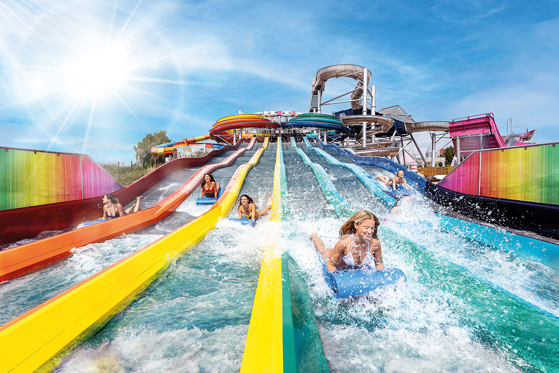 Inmitten grüner Großpalmen kann man hier den Alltag hinter sich lassen und sich in einen Tag voller Adrenalin, Spaß und Entspannung stürzen. Ein Widerspruch? Nicht wenn die größte Saunalandschaft der Welt auf die größte Rutschenwelt Europas trifft.