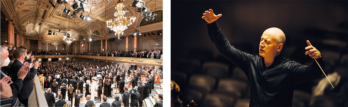 Left: Standing ovation after the opening concert of the season and the newly renovated Tonhalle Zurich. Mahler‘s Symphony No. 3 was played. Photo: Gaëtan Bally. Right: Paavo Järvi, music director of the Tonhalle-Orchestra Zurich. Photo: Alberto Venzago