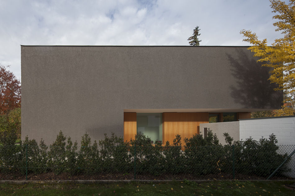 Ein herausragendes Beispiel für die Arbeit des Büros ist das Einfamilienhaus Krailling. Hier erlebt man einen durchgängig modernen Baukörper mit einer starken Beziehung zwischen Innen- und Außenraum. Die anthrazitfarbenen Außenflächen korrespondieren mit komplex gestalteten Durchblicken auf den in Glattverputz und Eiche gehaltenen Innenausbau: Eine architektonische Sprache, die sich typologisch sowohl auf die bauliche Verdichtung der Umgebung bezieht, als auch eine lichte, freundliche Innenwelt erschafft.