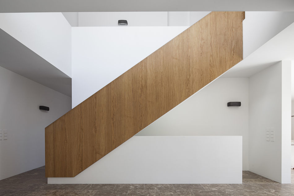 Ausschlaggebend für die geschlossene Ostfassade war die direkte Nähe zum Nachbarhaus und das Bestreben, unter diesen Bedingungen eine maximale Privatsphäre herzustellen. „Das führte bei dem Gebäude aber nicht dazu, dass es aufgrund der geschlossenen Fassade dunkel ist“, so Unterlandstättner. „Denn an dieser Fassadenseite sind dann zum Beispiel die Bäder mit Oberlichtern angeordnet.“ Zusammen mit der Ankleide werden die Bäder im Obergeschoss also ausschließlich über die Dachflächenfenster belichtet. Die Raumstruktur wurde hier speziell für die Zenith-Belichtung entwickelt und umgesetzt.