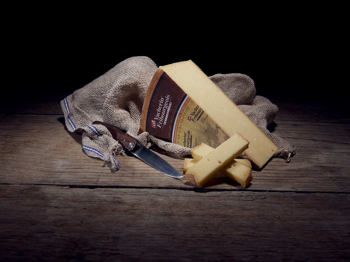 Als reines Regionalprodukt zeichnet sich der Vacherin Fribourgeois AOP durch seinen feinen Teig und seine schmelzende und raffiniert-subtile Textur aus. Bekannt seit dem Mittelalter, hat er seinen Namen vom lateinischen ‚vaccarinus‘, was ‚kleiner Kuhhirte‘ bedeutet.
