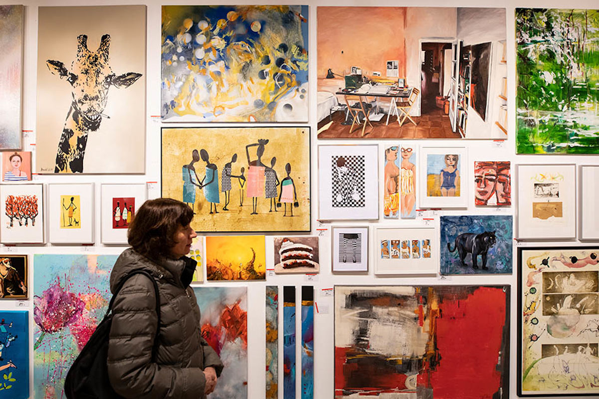 Since its founding over 20 years ago, Kunstsupermarkt has sold thousands of artworks. Today, it’s more popular than ever. Fixed prices from 69 euros, 129 euros, 249 euros to 359 euros ensure that the artworks remain affordable. Aside from established artists, the supermarket also presents young and unknown artists. Carefully selected new additions create a diverse and dynamic new programme each season.