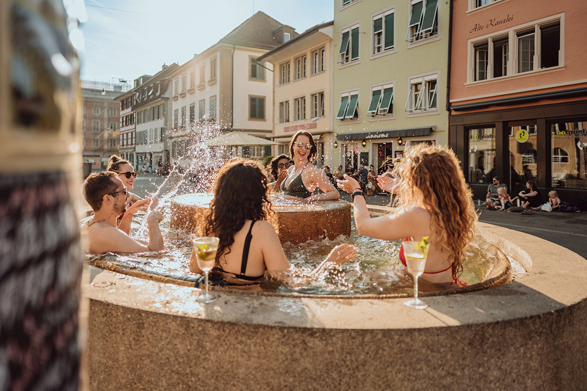Im Sommer bieten die beiden nahegelegenen Flüsse, Thur und Töss, dazu unzählige idyllische Badeplätze. Man kann zum Baden allerdings auch direkt in der Stadt bleiben, wie uns Stratacò verrät: „Die Winterthurerinnen und Winterthurer haben mit dem Brunnenbaden – ob mitten in der Altstadt oder in den Quartieren – einen besonders kreativen Weg gefunden, sich an heißen Sommertagen abzukühlen.“