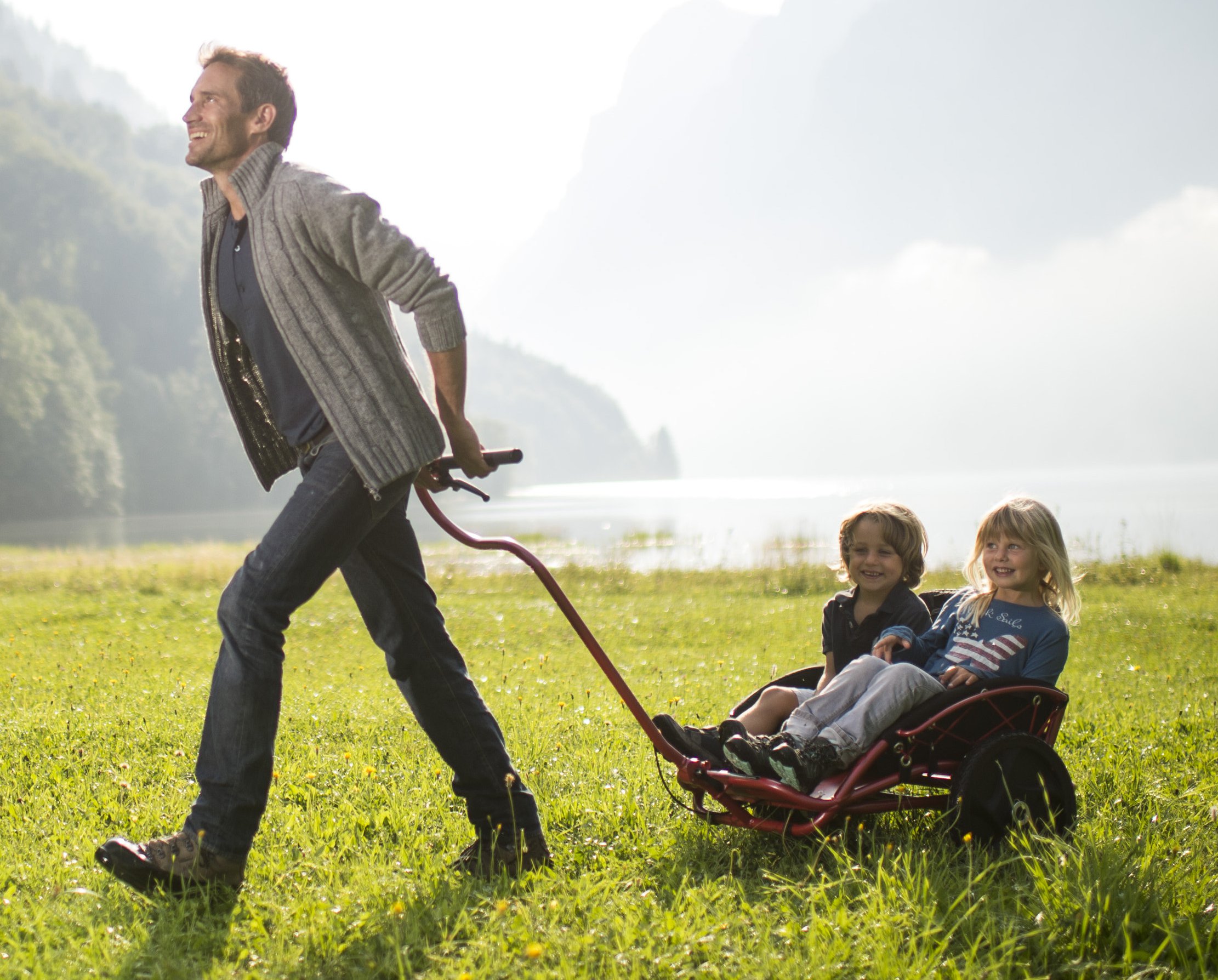 In a world of cheap labour and disposable products, it is refreshing to see a creation that unites adults and children in adoration. Unlike a conventional children’s buggy, the Swiss-made YippieYo Crossbuggy is designed for off-road exploration, taking design cues from mountain bikes to create a long-lasting tool for unbridled family fun. After seeing the limitations for families with young children in the outdoors, the extremely durable Crossbuggy steps in as the ultimate solution for all-Terrain hikes, commutes and school runs. Tanja Ripperger, founder and CEO of YippieYo, gestures at the distinctive-looking, singleaxle buggy: “Not only is it built around a hand-welded, high-end aluminium frame, it relies on superior disc brakes rather than the more typical plastic drum brakes.” YippieYo also made the gutsy decision to manufacture in Switzerland and assemble each custom-built Crossbuggy in Germanyat a non-profit organisation. For Ripperger, the benefits are multi-fold: “We’re able to achieve impeccable Quality, as well as guarantee the durability and robustness of each product.”