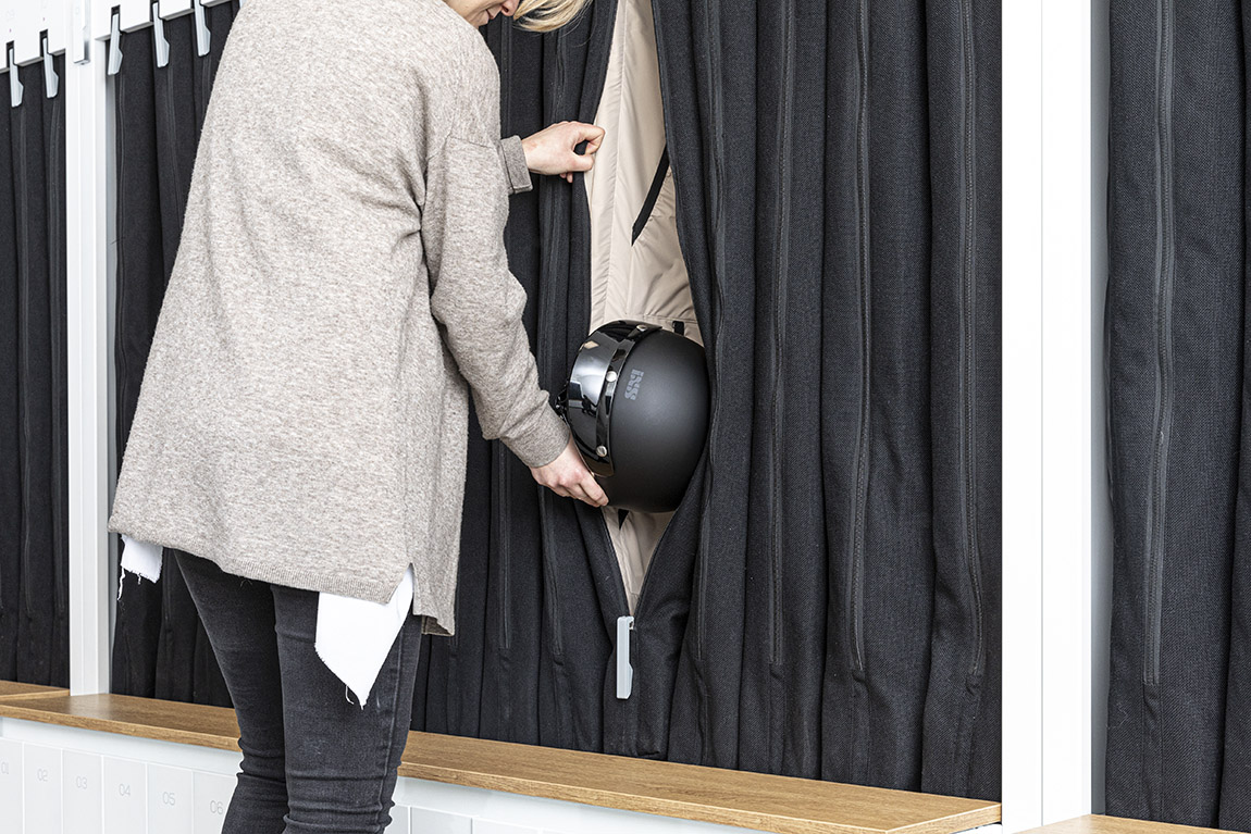 The core of Zippsafe’s Smart Soft Storage solution are pockets that flexibly adapt their size to the items stored in them. Clothes are conveniently hung up on pull-out hangers, smaller items can be stored in the inner pockets and larger items such as handbags or helmets can be placed on the bottom of the bag. Hygiene has also been taken into consideration: The bags’ integrated ventilation and the antimicrobial material improve the hygiene in changing rooms and also reduce the risk of contamination.